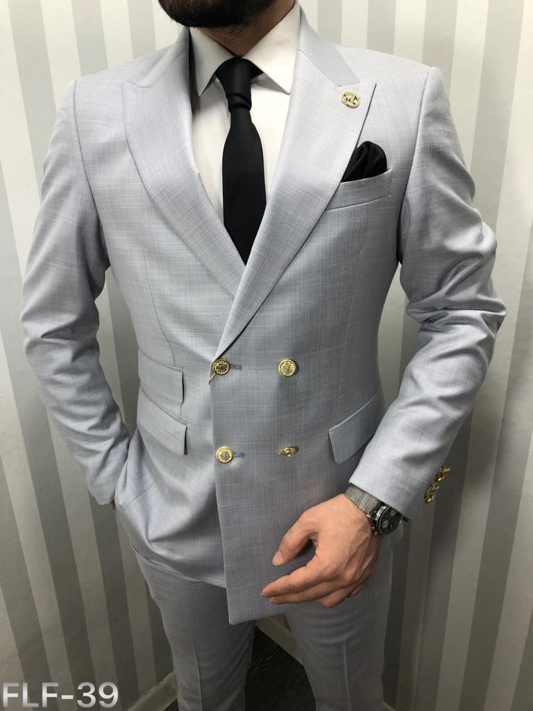 Acık gri flafıl kruvaze takım (çift cepli model)