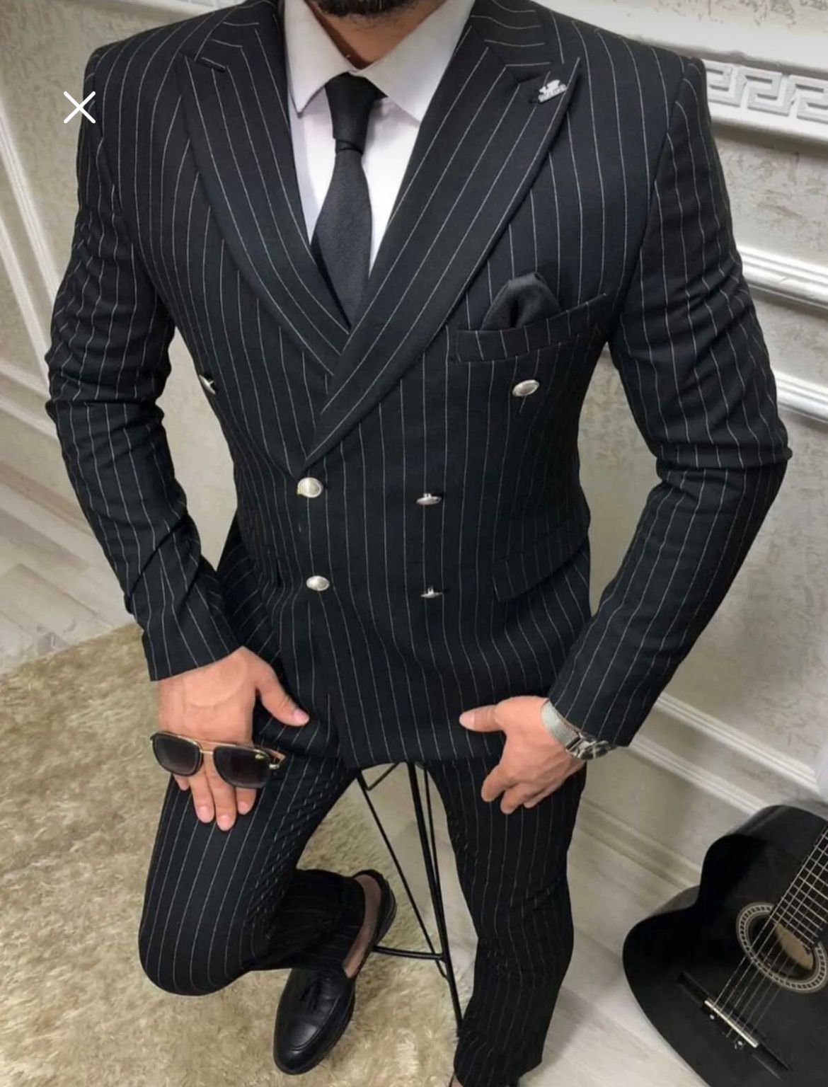 Siyah çizgili kruvaze takım